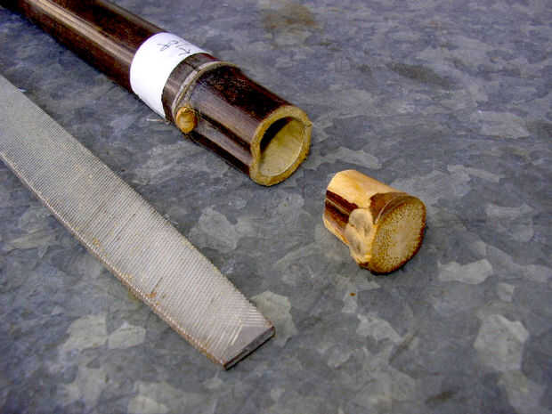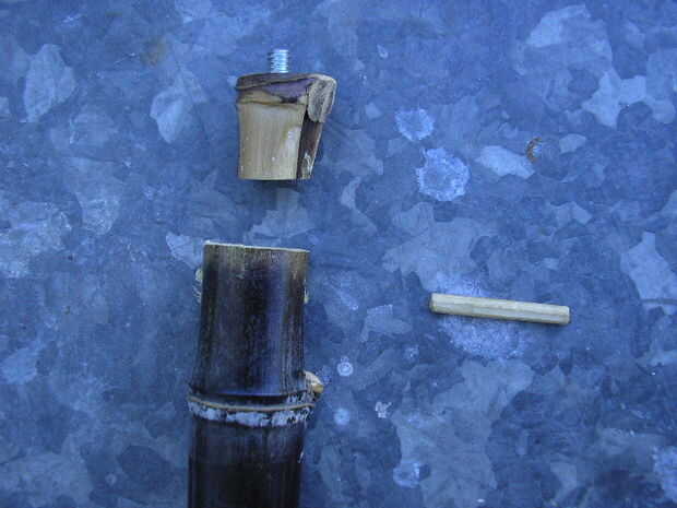 En este caso, tomé el pie superior o tan de la caña que había sido recortada de antes y buscó un nodo que había aproximadamente el mismo diámetro exterior que el interior del segmento superior.