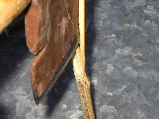 -Empuje el pasador a través del orificio en el bambú y la tapa superior. Debe tomar algún esfuerzo para empujar.