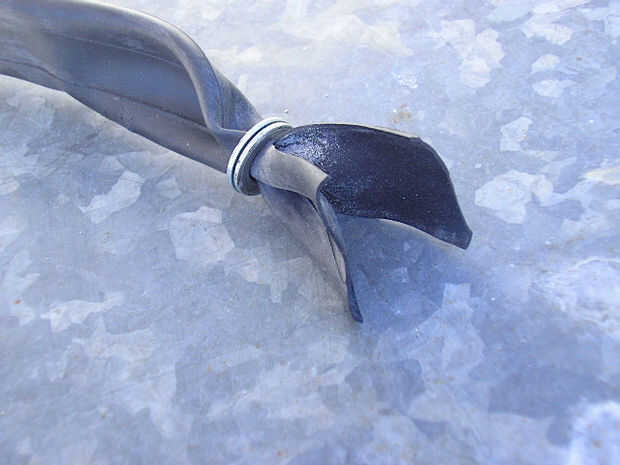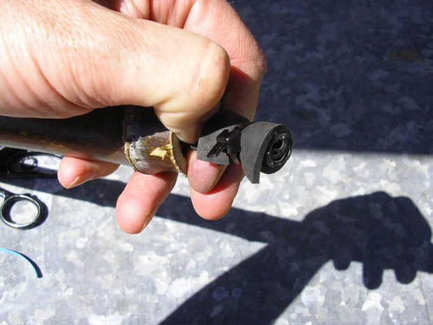 -Poner un atador de cable en el tubo cerca 2" del extremo. (para proteger el tubo, coloque una pequeña tira de cámara de corte de un trozo o una banda ancha de goma, por debajo de la atadura de cables antes de que apriete.