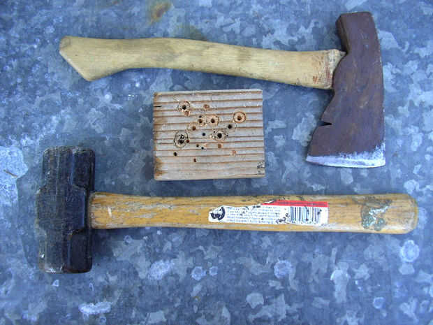 -Hacha o un cuchillo fuerte; para partir de bambú.