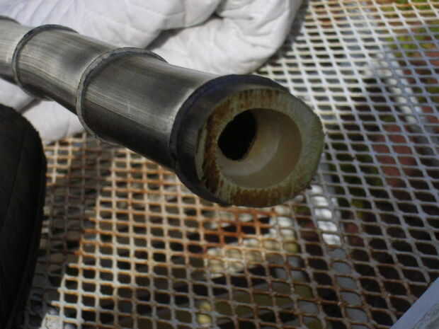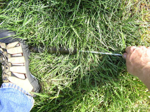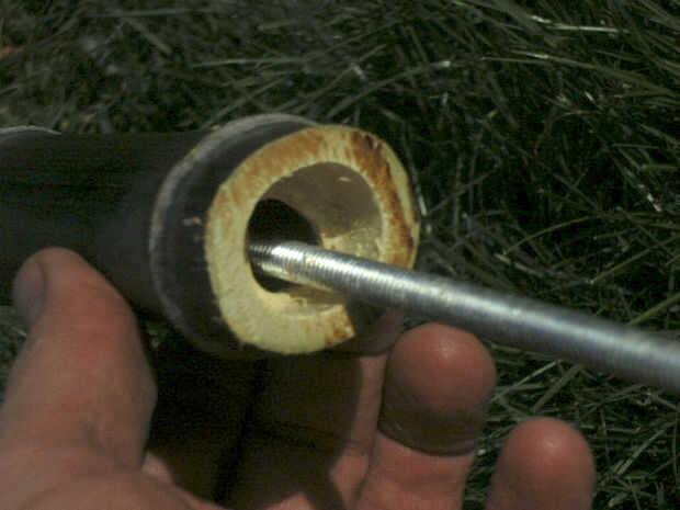 -Para empezar, use un golpe corto para romper el primer entrenudo. Luego tendrás suficiente espacio para conseguir la baqueta dentro de la caña. Si tu baqueta es suficiente, se puede tocar todos los entrenudos cortaron sus segmentos. No importa de cualquier manera, hacer aberturas lo suficientemente grandes como para atravesar el innertube en el otro extremo.