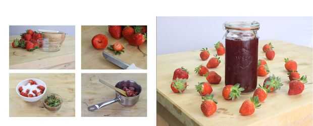 Esta receta es para 100 gramos de fresas. El primer paso es lavar y dejar secar. Retire la corona dura en la parte superior de la fresa. Poner en un cuenco y agregar los 100 gramos de azúcar en la jarra de Weck. Cubrir con plástico y dejar a temperatura ambiente durante 12 horas. Esto permite que el aglutinante natural de las fresas liberar. Ahora, ponga la mezcla en una cacerola en la estufa. Agregue una cucharada de jugo de limón. Dejan de 25 a 30 minutos a fuego lento. La mezcla se endurece cuando se haya enfriado. Tenga cuidado de no cocinar la mezcla de a de largo. La mermelada será acuosa y sabor como si fuera caramelo. Deja entonces minutos antes de llenar el weckpot. Cierre la tapa y el lugar hacia abajo, esto permitirá el weckpot a vacío. En un lugar fresco y oscuro, su mermelada de fresa se puede almacenar por 3 meses.