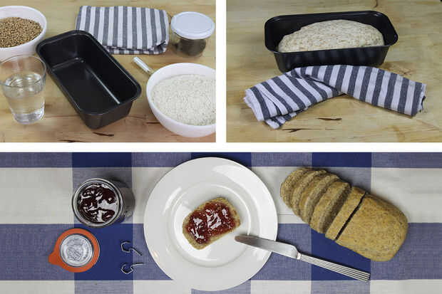 Masa de pan debe subir. Vas a hacer levadura para hacerlo. La levadura son bacterias pequeñas que el pan se multiplica en volumen. Un frasco con pasas de uva se proporciona en el kit. Llene la jarra con 2 centímetros de agua. Ahora deje el frasco a temperatura ambiente durante aproximadamente 5-7 días, agitando el frasco una vez al día. También abra la tapa cada día para soltar el aire dentro del frasco. Cuando el gas hace un notable sonido después de 5-7 días las pasas deben filtrarse del residuo. Añadir unas cucharadas de su propia harina procesada a este residuo hasta que quede una masa como la estructura. Otra vez deje el frasco a temperatura ambiente durante 5-7 días, al abrir la tapa para liberar el gas cada día. Después de cinco días debe han duplicado el volumen de la levadura. Ahora está listo para procesar en su pan.
