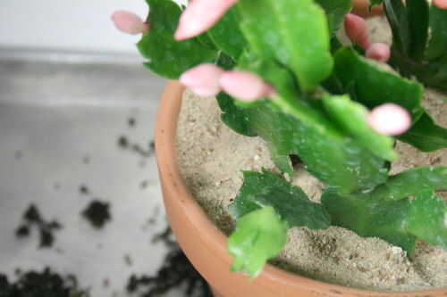 Superior de las macetas con arena fresca.  Esto le ayudará a mantener los mosquitos lejos y hacer la olla un poco más bonito.