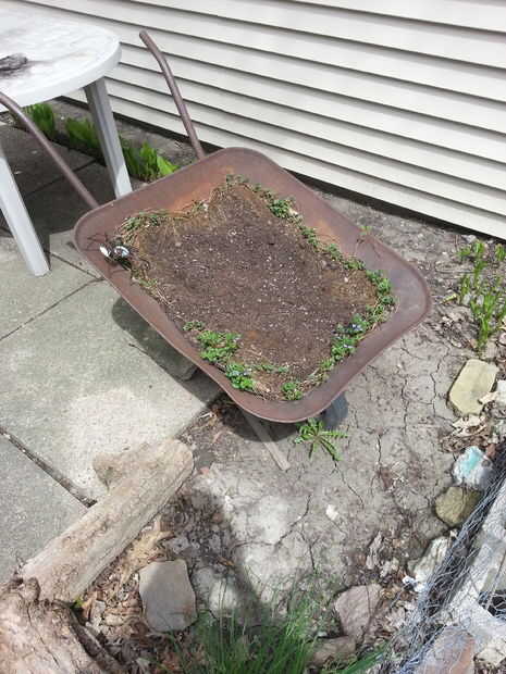 un reciente artículo en una revista de jardinería me inspiró a pintar una alfombra en mi patio hormigón. Estamos hablando de un 25 años de edad, más o menos acabada, manchados de quién sabe qué y generalmente poco atractivo, patio con jardín. Eligió