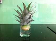 Poner la corona en un vaso de agua, después de hacer esto Coloque el vaso en una zona bastante oscura para alentar el crecimiento de la raíz en lugar de hojas.