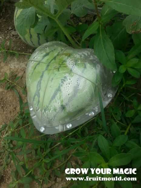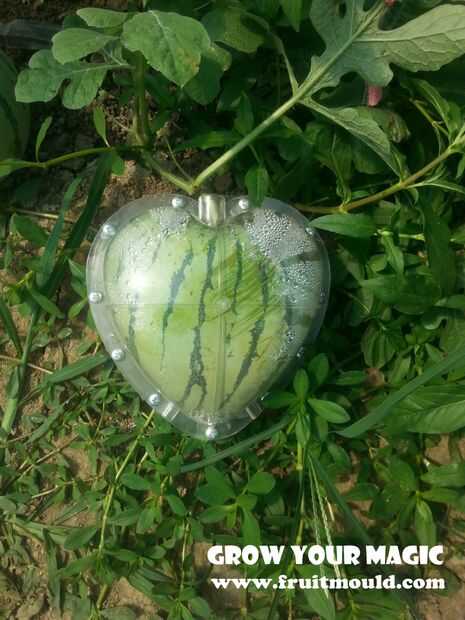 Cuando esté listo el molde de plástico de forma de corazón, entonces usted puede poner el molde en la sandía de bebé cuando todavía es joven y pequeño que el molde. conecte firmemente el molde con tornillos. tal vez algunos sandía ocurrió dentro del molde, pero no te preocupes, porque hay bodegas en el molde que pueden lanzar la sandía por la noche cuando la temperatura está abajo... tan próxima cosa a hacer es simplemente esperar a que la sandía creciendo lentamente...