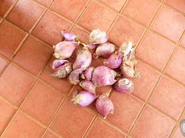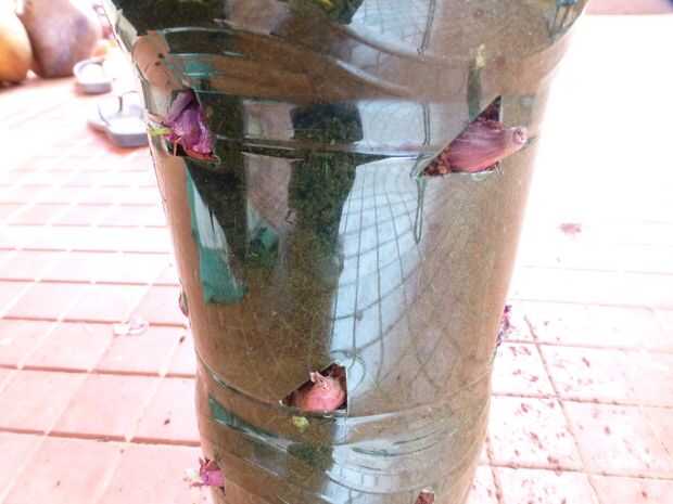 • Empuje los chalotes a través de los agujeros en el suelo, manteniendo la punta creciente fuera.