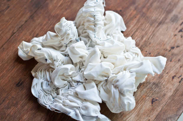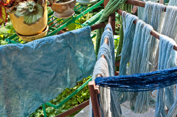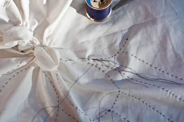 Otro método a utilizar en la creación de un patrón es puntada resiste. Dibujaba algunas líneas sobre la tela y había cosida una puntada corriente siguiendo las líneas. Entonces tiró firmemente para recoger la tela, haciendo las piezas resistente al tinte. Cuando el tejido se completa con puntos de sutura o resistir cera simplemente se sumerge en el baño de tinte, sacó a oxidar y voila!... azul decoradas telas de su propia fabricación. Después de la primera inmersión y oxidación que se puede sumergir una y otra vez, cada vez permitir que el color azul a través de antes de proceder a la siguiente inmersión. Cada vez que intensificará el color.