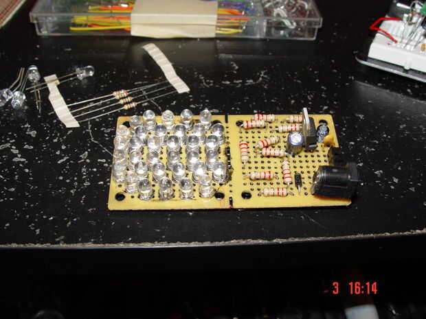 protoboard. Averiguar la manera más eficiente para todos lo LED de caber en la placa de circuito