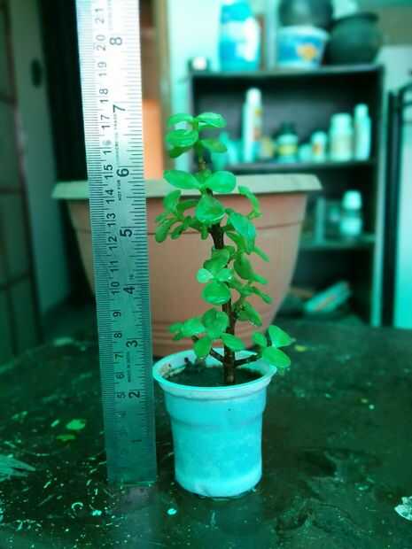 1. Una pequeña planta de jade. Está bien si consigues una más grande también:). Pero trata de escoger una planta que tiene ramas por todas partes. Como un paso del bono te diré cómo propagar plantas jade más adelante. La planta se muestra en la imagen se propaga por mí y se ha convertido en una de 2" de 4" taza de té de plástico.