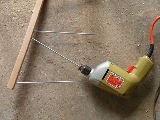 Para agilizar la tarea de atornillar las varillas en largas y tediosa, tirada encima de la varilla roscada en el taladro y el poder solo que les adelante. Poner todas cañas de cuatro en un lado, apretándolos bien poco más allá de sus fines. Luego agregue la segunda pieza. No funcionará si intenta poner en ambas piezas de madera al mismo tiempo.