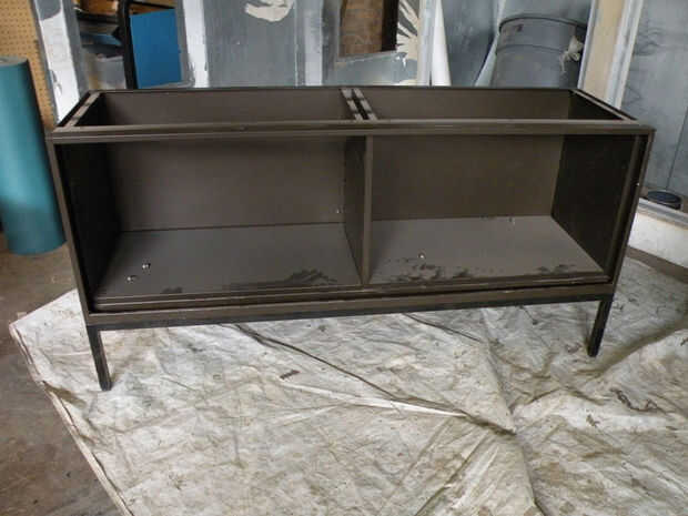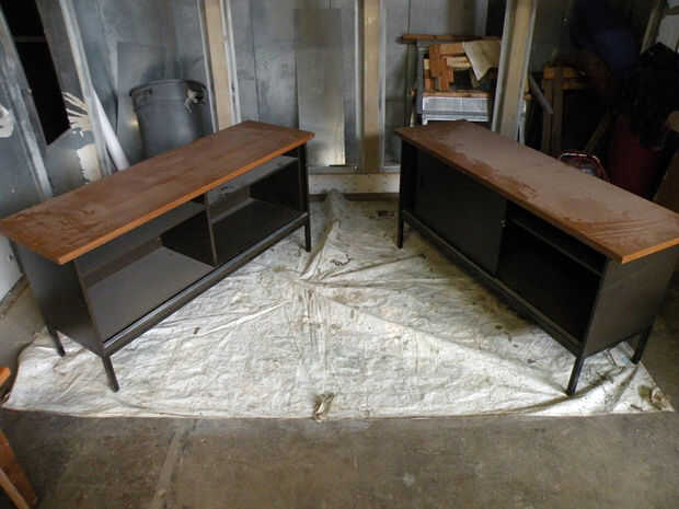 El primer paso es el más simple: rasgue apagado la tapa vieja, rasgar hacia fuera las viejas puertas, tire hacia arriba la vieja tira puerta corredera y limpie los armarios con un paño húmedo. Zumbido abajo de los lados con una lija 100 (usar una máscara!) a mano o con una lijadora orbital. Limpie todo el polvo con un paño húmedo. Cintas de las piernas y volver a pintar el cuerpo con pintura de esmalte de metal. Fui el setenta viejo aguacate verde con un negro completamente mate, pero pinte cualquier color que te gusta. Un blanco brillante sería agradable, o un color para que coincida con el salón irá en. Mientras que la pintura se está secando (puede tardar hasta 24 horas), pasar a hacer las copas de nuevo.