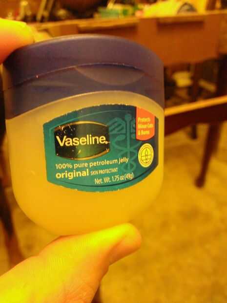 2) frotar una cucharada (masa?... realmente?) de vaselina en las esquinas, pies, decidió estratégicamente áreas... no seas tímido, frote sobre!