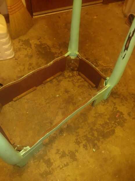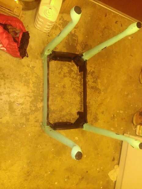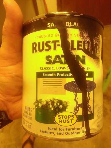 1) apliqué un aceite basado en Rust-O-Leum exterior pintura negra en la parte inferior de la mesa para sellar contra el tiempo.