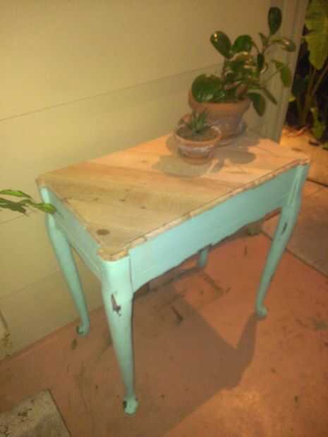 Se trata de una pequeña mesa que va bien en un deck o un soporte de la planta. Esto se hace problemas, cuanto más tiempo su exterior mejor se verá. Usé todos los tableros de roble para vida larga al aire libre. Cualquier persona con conocimientos bás