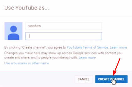En Resumen, haga clic en el enlace crear un canal junto a tu dirección de Gmail
