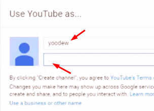 Campo superior = Enter una sola palabra de su nombre de canal de Youtube