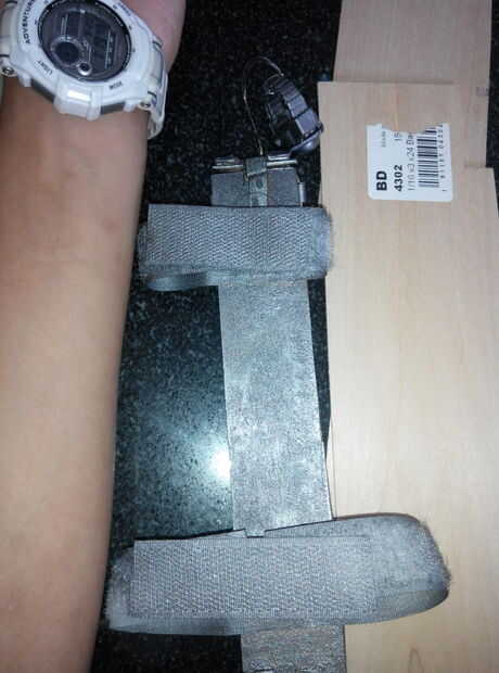 Paso 1: Las herramientas1 x cajón diapositiva correas de 2-3 x o tiras de Velcro cortador de metal Dremel martillo imaginaciónPaso 2: Una instalación necesaria Cortar la diapositiva del cajón donde cabe cómodamente en el antebrazo. Asegúrese de hacer