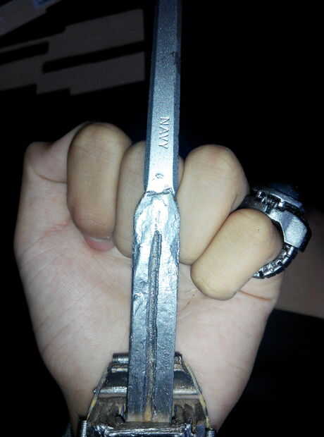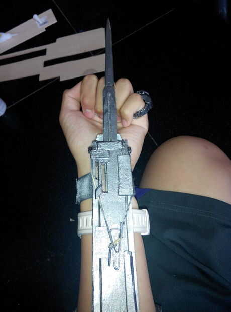 Inspirados en el Assassins creed y http://exoticautomatic.com/, decidí hacer mi propia gravedad accionada xiphoid.  Aunque no parece como que la gravedad es ideal, me permite retraer la cuchilla. Y si realmente quiero, ranuras para montar muelles. Me