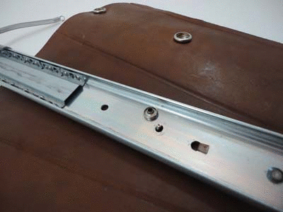 Ahora utilice sus remaches rápidos clavar la cuchilla a la sujeción como se muestra en la imagen GIF. remaches de 3 o 4 será suficiente para sostener con seguridad el mecanismo de la cuchilla para el bracer.