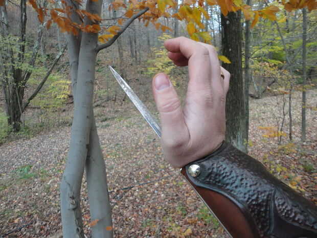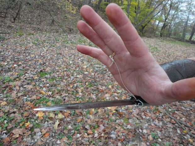 Inspirados en el Assassins creed y http://exoticautomatic.com/, decidí hacer mi propia gravedad accionada xiphoid. Aunque no parece como que la gravedad es ideal, me permite retraer la cuchilla. Y si realmente quiero, ranuras para montar muelles. Me