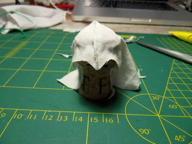 Esta fue la primera vez que he creado una campana para un Corky, que resultó bastante bien. Necesitarás algún tipo de bolsillo o esquina de una bolsa para hacerlo. Tengo el bolsillo de un viejo par de pantalones cortos y el color, forma y textura era perfecta. Usted podría, por supuesto, sembrar, pero no tengo mucho experiencia con eso. Para hacer la campana más hinchada, pegar algún algodón u otro material de relleno en la cabeza. Luego pegue en la campana, como se muestra en las fotos de arriba (lo sentimos, es difícil explicar con palabras).