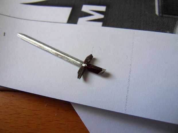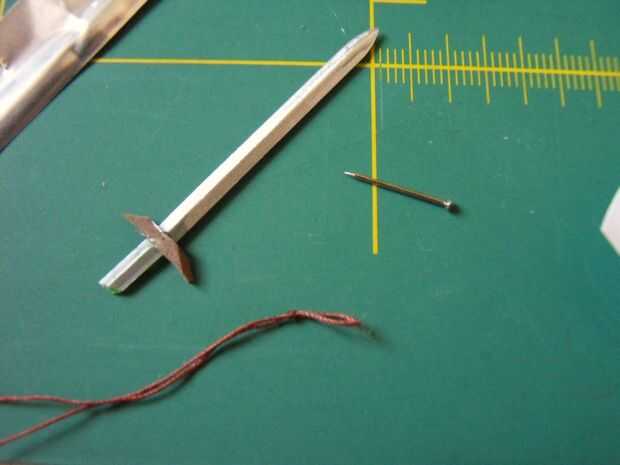 Para sujetar la espada y la daga a su cuerpo, hice un lazo con un hilo, sujetarlo con alfileres.