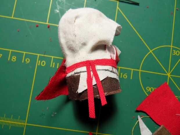 Para agregar al detalle, corte dos estrechas tiras de tela roja (2-3mm) y pegar en el lado de la banda rojo fantasía.