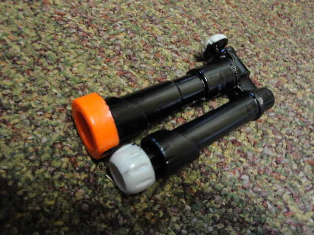 En algunas de mis fotos te darás cuenta de que tengo la cinta alrededor de la parte delantera del cañón, la parte superior del botón y el extremo de la bomba; Esto es para mantener la pintura de ellos cuando rocíe pintarlo. Manteniendo el botón y la bomba el color original era preferencias personales, pero te recomiendo que mantener la punta del cañón naranja. Esto es técnicamente una pistola, así manteniendo la punta naranja es una forma de mostrarlo es un juguete.