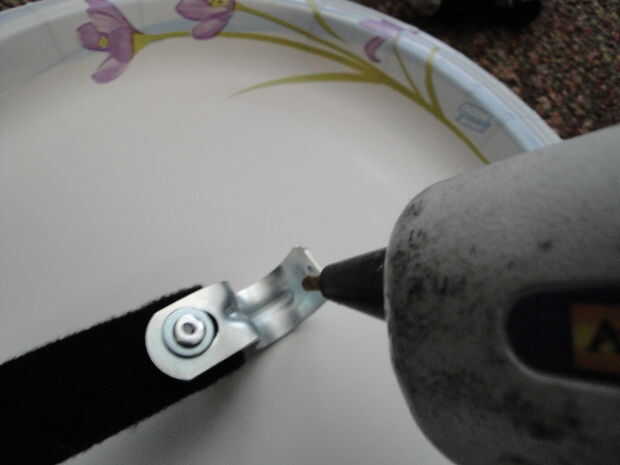 Empezar poniendo un buen pegote de pegamento dentro del bucle de la abrazadera para tubería. Cualquier tipo de pegamento se trabajan, pero tenga mucho cuidado si decides usar pegamento caliente! Abrazadera para el tubo está hecha de metal, por lo que si se utiliza pegamento caliente, el metal se calientan! Personalmente utilicé pegamento caliente y luego maneja la Asamblea con los guantes, pero podría ser más seguro utilizar otras clases fuertes del pegamento.