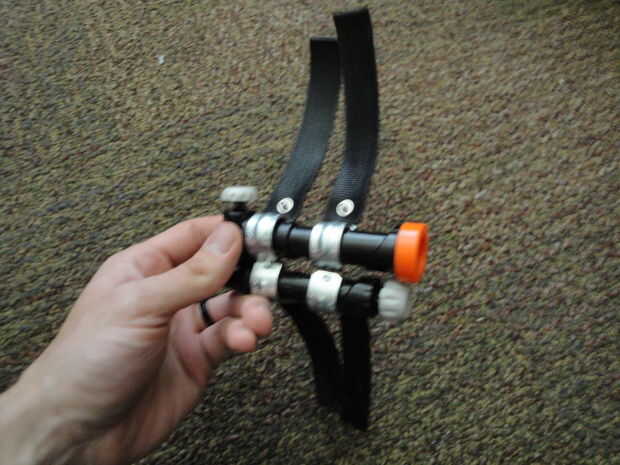 A continuación, simplemente empuje la abrazadera sobre el tubo de la parte superior o inferior de la pistola de Nerf. Necesitarás dos en la parte superior e inferior. Asegúrese de que la parte superior izquierda e inferior izquierda (y superior derecha y abajo a la derecha) las correas están alineadas para que las correas se superpondrán cuando vayas a poner la pistola oculta en!