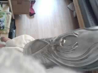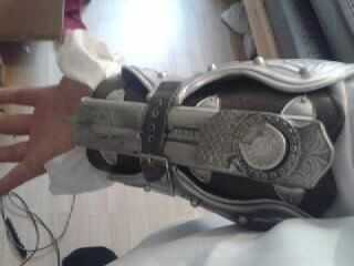 lanzar un clip completamente recto en un taladro o un dremmel y taladre un orificio derecho a través el centro del botón. Cuando hayas hecho esto, tomar un hilo de pescar y hacer un nudo grande en el botón. Alimente el cable a través de un anillo y nudo en. ¿Ahora prueba el anillo hacia fuera, resorte de la cuchilla?