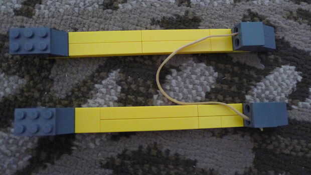 esto es una hoja oculta retractil. Todas las partes excepto la goma, llavero e hilo de rosca están disponibles en el juego de lego nxt 2.0. Por favor ignorar el color de las partes. ¡ Disfrute!Paso 1: El cuerpo This part will be strapped onto your ha