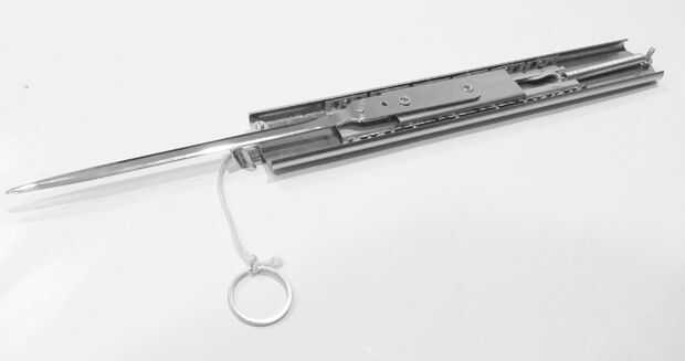 2 comprar igual deslizamiento mechnisms de cajón en cualquier tienda local de harwareun paquete de tubo de la resina del Expoxy pegamento gorila.2 piezas de metal de calibre 18 que puede caber en el extremo del brazo deslizante.Este fue un apoyo hech