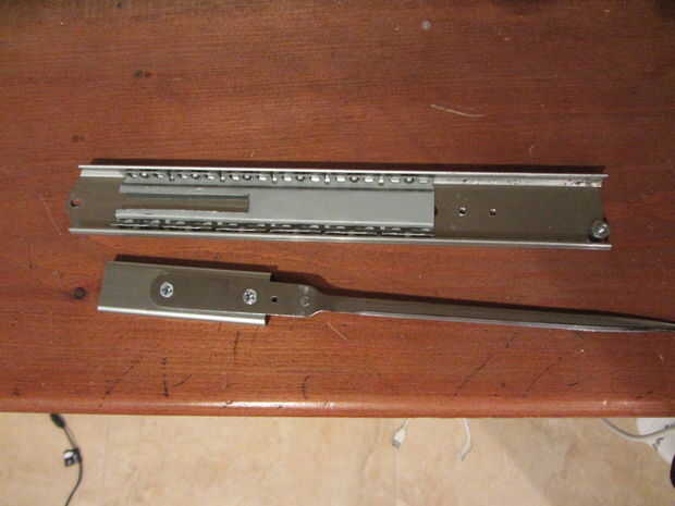 2 comprar igual deslizamiento mechnisms de cajón en cualquier tienda local de harwareun paquete de tubo de la resina del Expoxy pegamento gorila.2 piezas de metal de calibre 18 que puede caber en el extremo del brazo deslizante.Este fue un apoyo hech