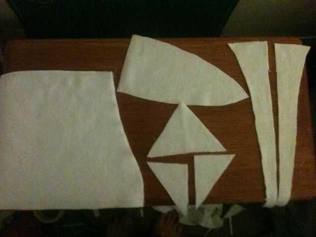 Las piezas más grande siguiente que se necesita son los paneles frontales. Establecer el patrón cerca del borde de la tela, dejando a su auto tanto espacio como tela adicional tanto como sea posible en una sola pieza. Siga la misma fijación y pasos de corte como el último panel. Usted necesitará hacer esto dos veces, dejándole con cuatro paneles en esta forma, la mitad de ellos la imagen del espejo de los otros dos (en mal estado esta parte y tuvieron que improvisar con material restante). Una vez más, como que se establece estas piezas intentan dejar el resto de su material en una pieza grande para cortar el resto de las piezas del patrón de.