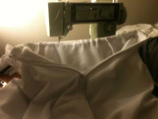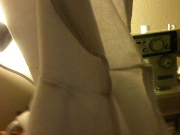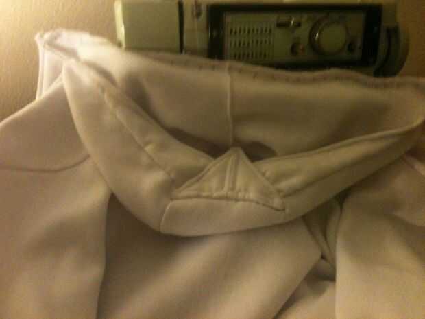 Si usted está siguiendo el patrón de suéter para los paneles frontales, usted debe dejarse con un split de tela rectangular en la parte delantera del cuello. Utilizar una puntada de resbalón para unir esos junto y forma una franja swooping abajo en el cuello y los lados de la cara.
