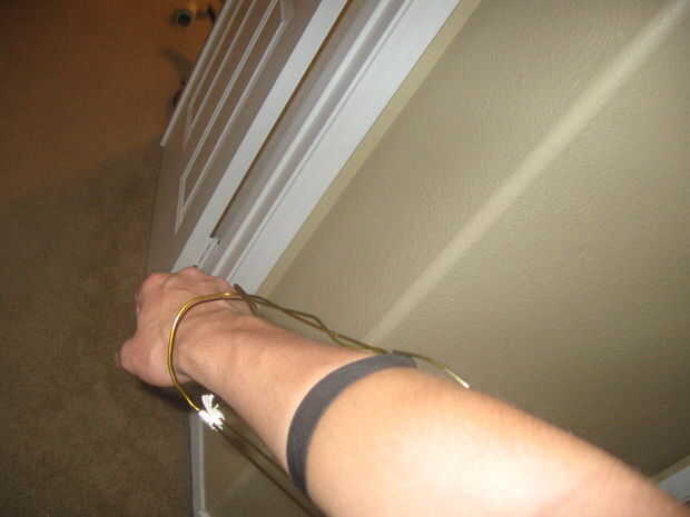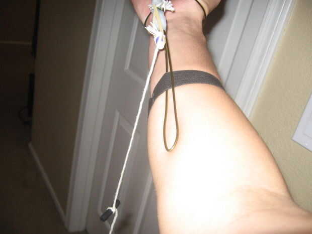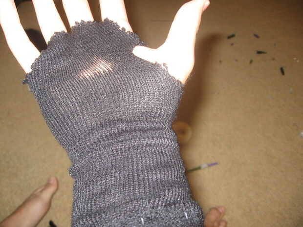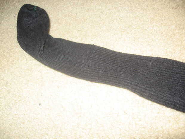 Para hacer la cubierta, tomar un calcetín negro y cortar pequeños agujeros en el extremo de los dedos, esto hará que un guante sin dedos al final. Corte un agujero debajo de la muñeca para que el montaje de la pistola tiene una abertura para disparar, luego cortar un agujero por donde la parte del pull-back de la Asamblea de la leña. Para terminarlo simplemente atar una cadena hasta el final del borrador de la Asamblea y luego atar el otro extremo de la cuerda para el agarre del lápiz, para usar como un mango de tracción.