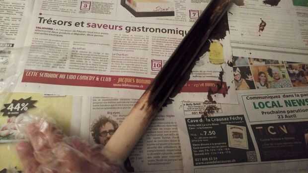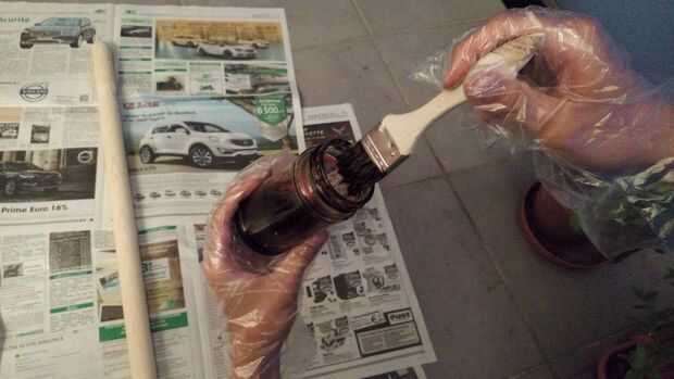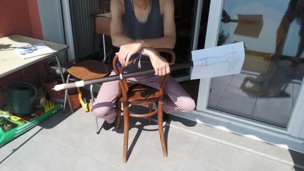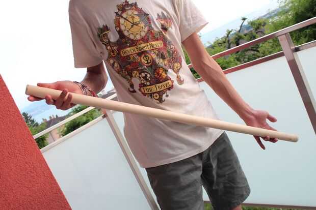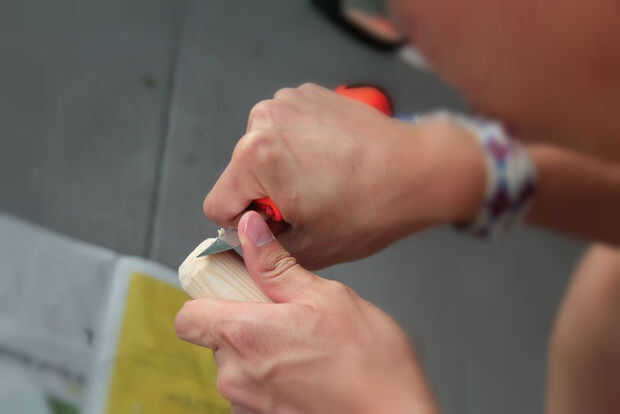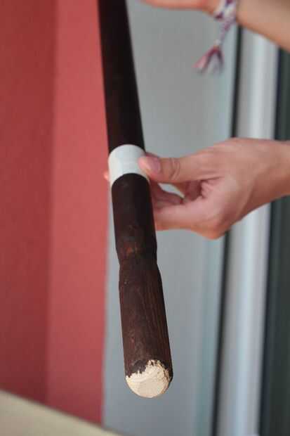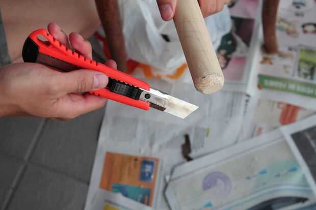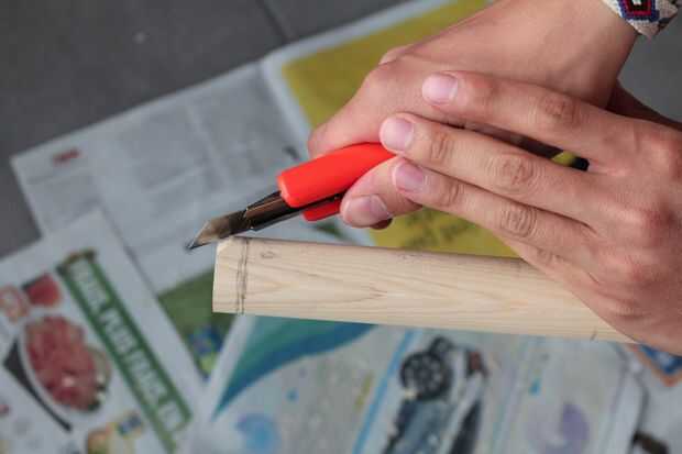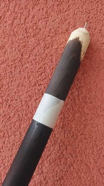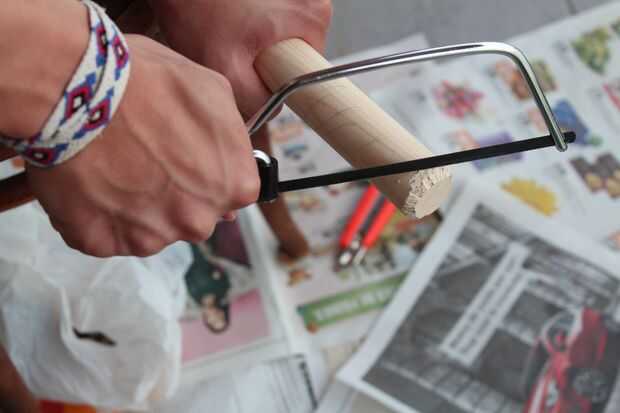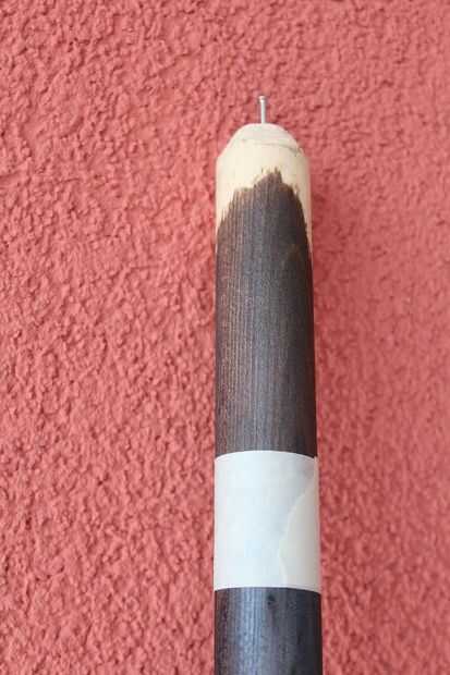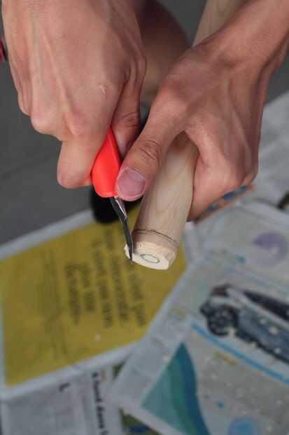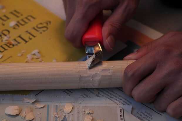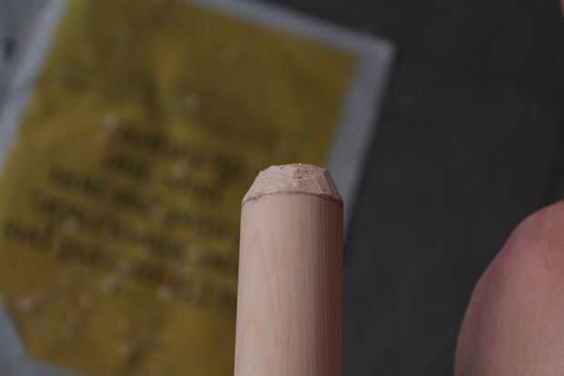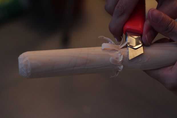 2. afeitar el extremo superior del palo en un hemisferio con la ayuda de un cortador y la parte inferior en un borde inclinado