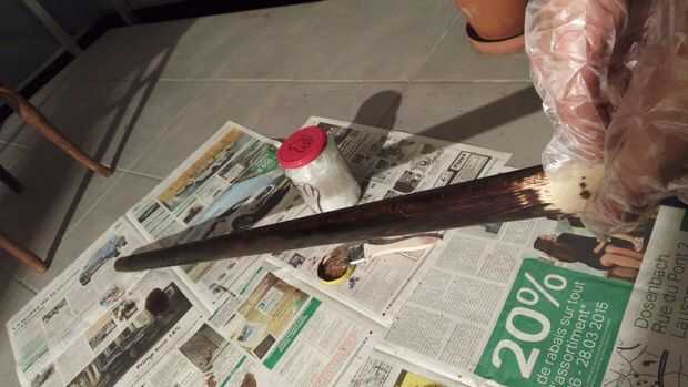 1. cinta adhesiva o tiza blanca puede ser utilizado para la marca en el palo si la pintura cubre sus pistas.