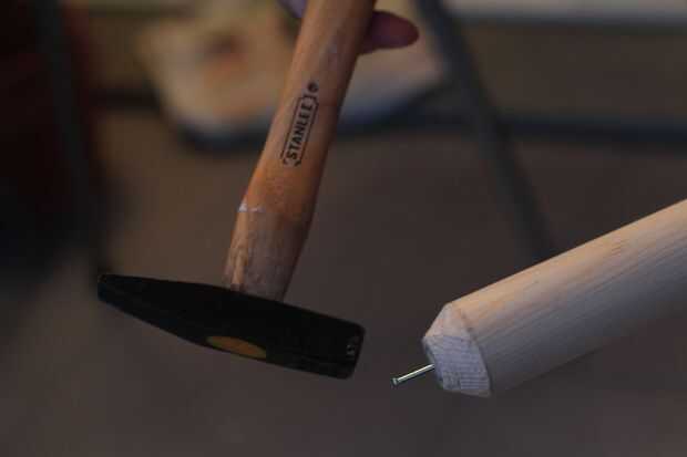 3. un clavo en la parte inferior como una armadura para el extremo puntiagudo del martillo.