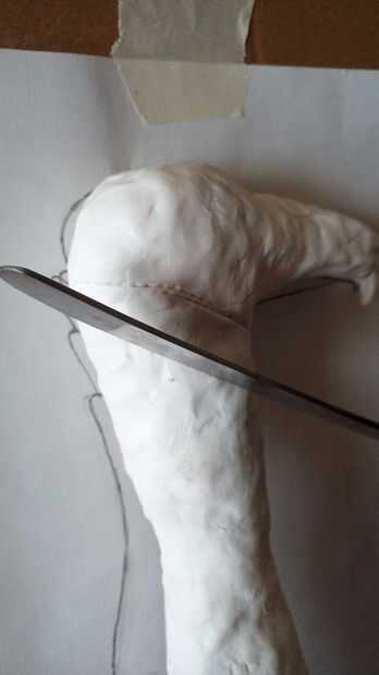 Aquí viene acondicionado... para amasar la arcilla, como lo hace para una masa de pasta. doblar y tirar, doblar una y otra vez. Hasta que se siente esponjosa y suave. Temperatura corporal así como el aire en que te retiras hará agradable para trabajar y esculpir con.