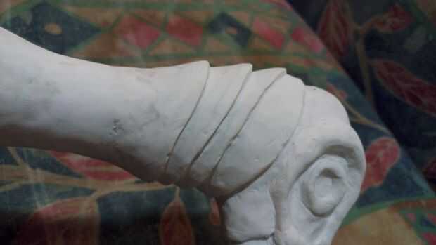 Utilice un secador de pelo. ¡ Hace maravillas! De cualquier manera le tomará unos 20 minutos para se endurezca utilice un cortador de algunos bordes duros y grabar a los pliegues como la nariz y el collar de arena la esculpe la superficie hasta que esté suave (papel de grano arena 80 debe hacer el trabajo!)