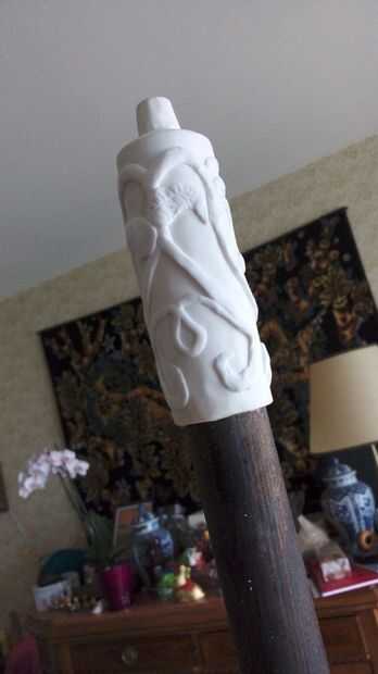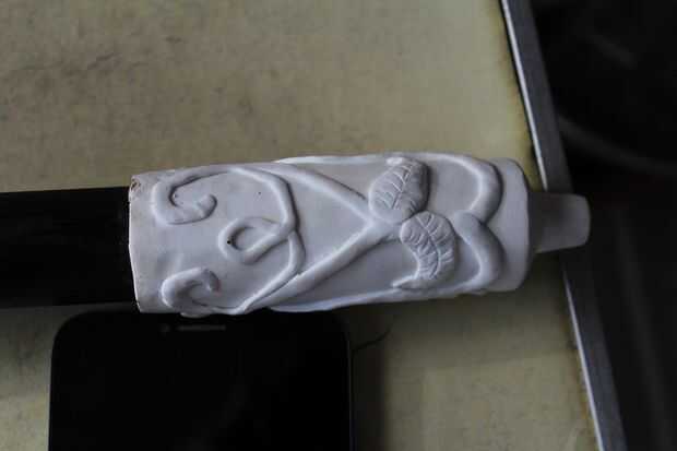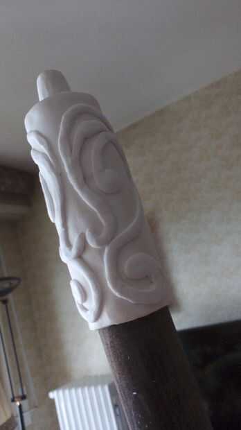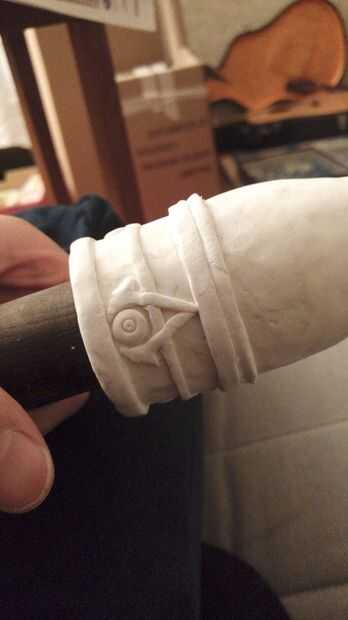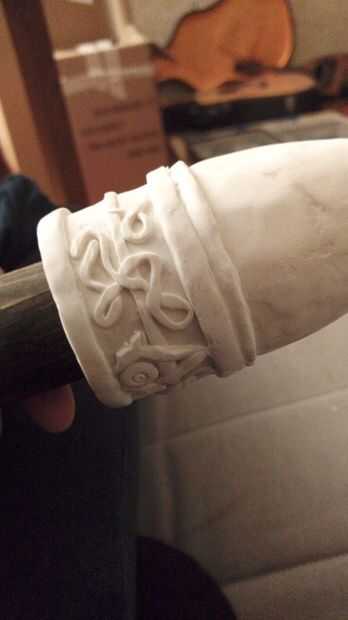 (no olvide insignia del asesino impresionante en esta parte!) y la parte inferior, para hacer estas tiras de arcilla lo delgada es un truco para hacer un recordatorio: los detalles en la caña de Jacob son las plantas y agregar algunas hojas es un buen toque. totalmente puedes creativa mediante la adición de espirales y las venas, manteniéndose fiel a la temática victoriana.