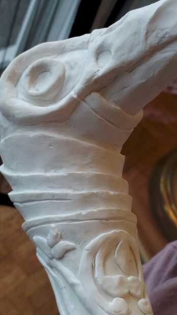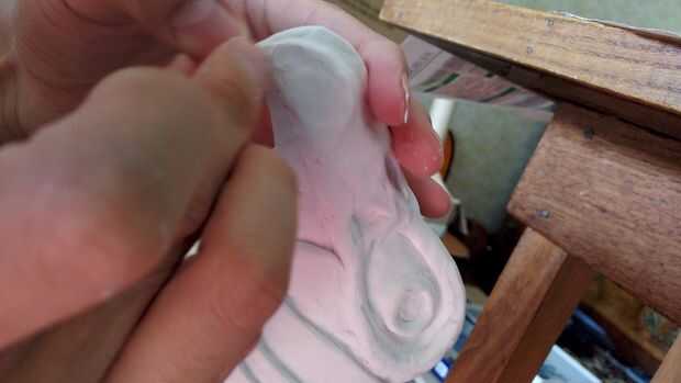 Colocar estas tiras delgadas de arcilla para completar todos los detalles en el cuello, el borde
