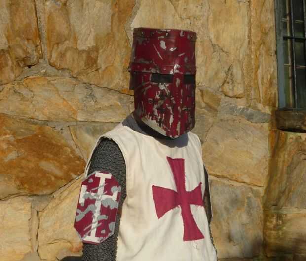La base del diseño es un casco de Caballero Templario como se ve en el video juego Creed Assassins. Este casco era parte de un traje completo de Caballero Templario. Ya que no pude encontrar un casco exactamente como esta y lo que encontré era caro, hecho a mano mía.