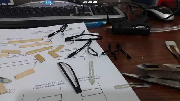 Según el proyecto de "micro ballesta" crear una ballesta con 2 abrazaderas y 4 palitos regulares.