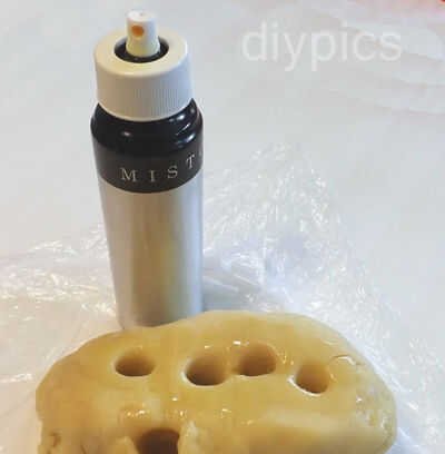 Montón para arriba así que es por lo menos tres pulgadas de alto. Aplanar la parte superior. Los cinco dedos se hunden en la plastilina hasta más allá de la primera articulación. Retire los dedos, aceite de bien y ponerlas en los agujeros para cubrir el "molde" con aceite. Retire los dedos.