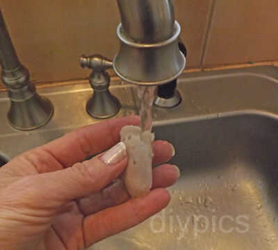 Esta parte es complicada. Básicamente, tienes que pelar la plastilina de los dedos en lugar de tirar los dedos fuera del molde. Los dedos le parece desordenado con plastilina. Enjuagar la plastilina con agua fría. Los dedos tienen un poco "falda" en la parte superior. Deje este borde. Ayudará el dedo pegue a su ventana.